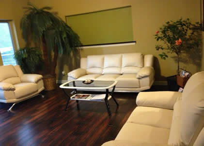 Our waiting room has nice comfortable couches rather than hard chairs as well as a large screen tv.